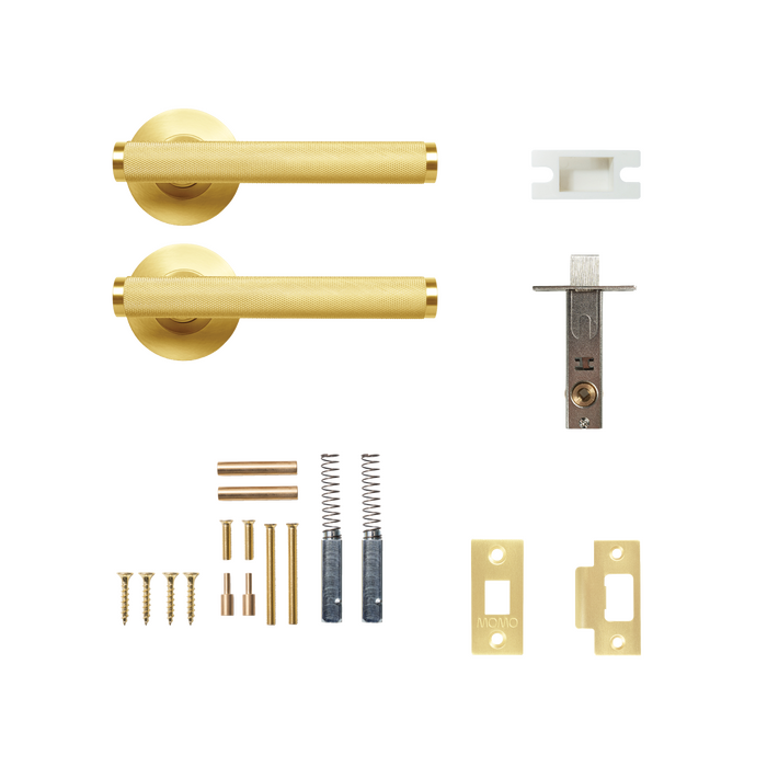 The Bellevue Knurled Lever Solid Brass Tubular Latch Passage Set – Brushed Satin Brass is a bold architectural statement piece designed for luxury entry doors and high-end residential or commercial projects. Crafted for visual impact and built for durability, this premium door handle delivers refined form with commanding presence.