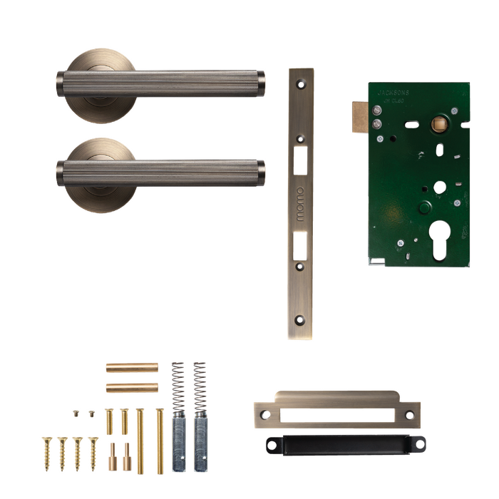 The Bellevue Lined Lever Solid Brass Mortice Passage Set – Dark Brushed Brass is a bold architectural statement piece designed for luxury entry doors and high-end residential or commercial projects. Crafted for visual impact and built for durability, this premium door handle delivers refined form with commanding presence.