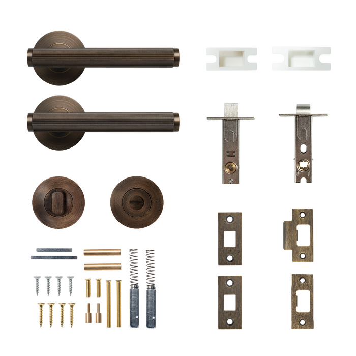 Engineered for both aesthetics and performance, the Bellevue Lined Lever Solid Brass Tubular Latch Privacy Set – Bronze offers lasting durability while delivering the premium look expected in luxury door hardware.