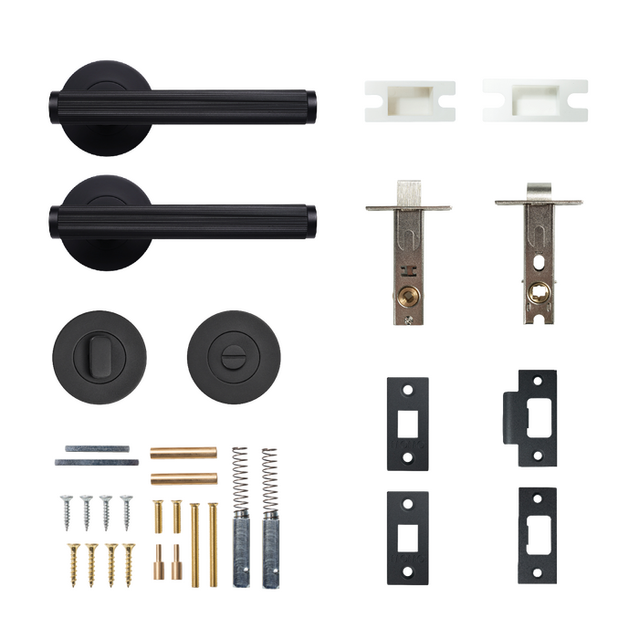 Bellevue Lined Lever Solid Brass Tubular Latch Privacy Set – Matt Black